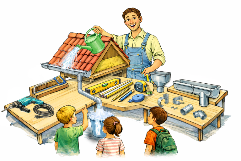 Leerlingen maken op een praktische manier kennis met de basisprincipes van dakconstructies, waterafvoer en vakmanschap binnen de bouwsector